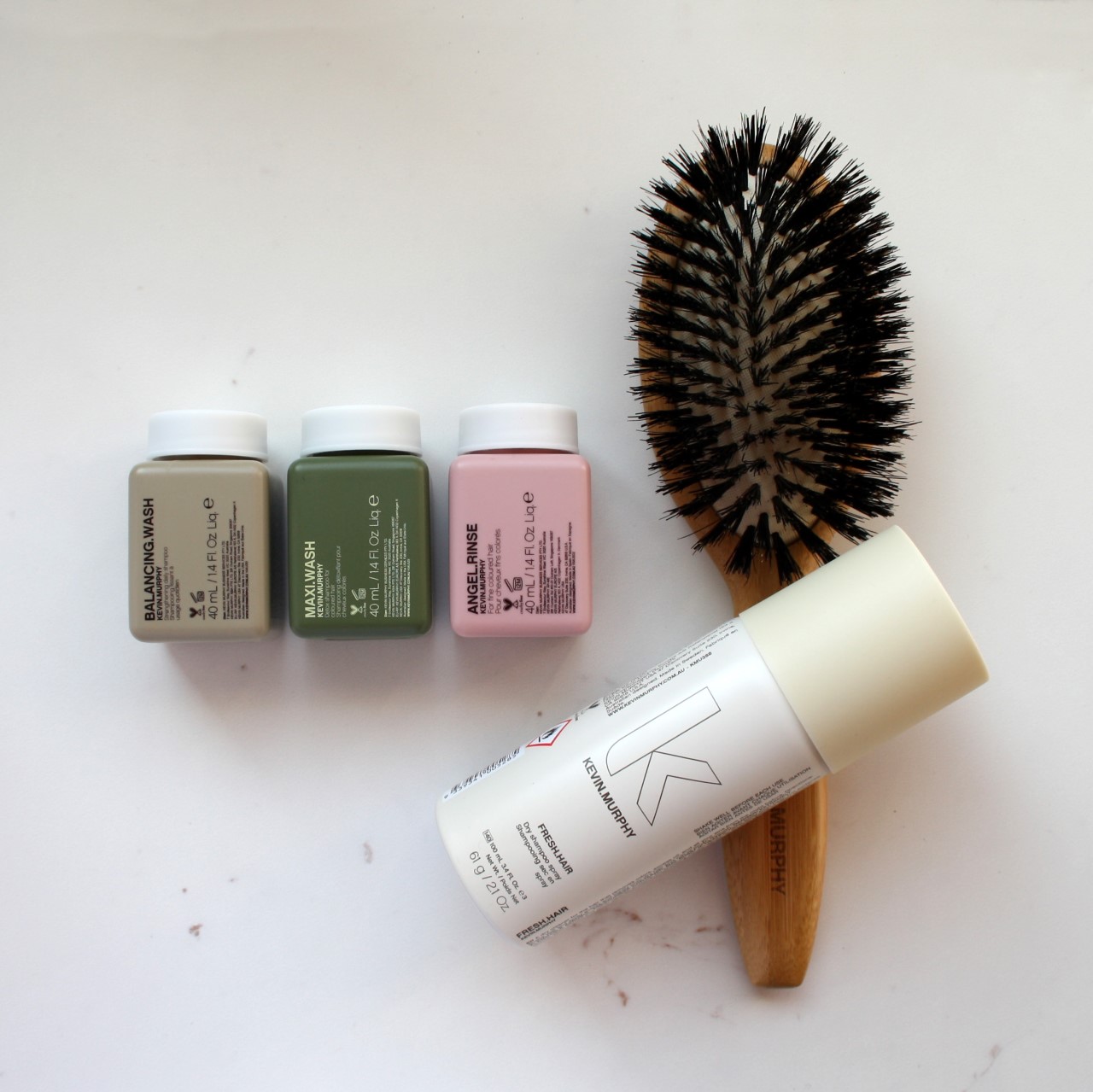 Deze drie stappen vormen de perfecte basis waardoor jij zonder al te veel moeite een week je haar niet hoeft te wassen. Om het goed af te ronden is het belangrijk je haar droog te föhnen, want als je jouw haar laat drogen aan de lucht wordt het sneller vet. Let op dat je stylingsproducten vrij van sulfaten en siliconen zijn, zoals de producten van KEVIN.MURPHY. Na deze week zal je merken wat sulfaten en parabenen normaal gesproken met je haar doen. De FRESH.HAIR en de SMOOTHING.BRUSH uit mijn No Poo Challenge-pakket zijn de rest van de week jouw life safer. Mocht je haar na een aantal dagen wat vettiger worden of misschien minder lekker gaan ruiken spray je een beetje FRESH.HAIR over je haar, waarna je er vervolgens doorheen borstelt met de SMOOTHING.BRUSH. Zo onttrek je de vettigheid en ruikt je haar weer lekker fris naar vanille.